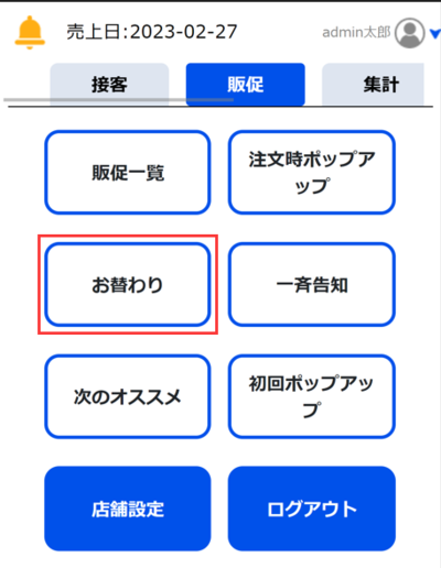 お替わりをお客様に促す際に表示されるポップアップの設定を行うことができます。
