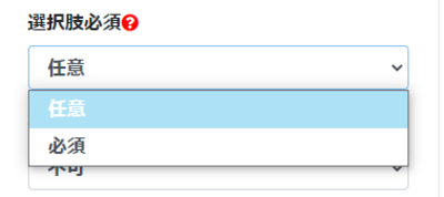 ⑩「選択肢必須」はお客様側に対してオプションは任意/必須か選択できます。