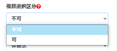 ⑪「複数選択区分」はお客様側に対してオプションの複数選択の可/不可が選択できます。