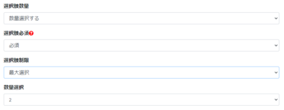 ⑤選択肢制限:未設定、最大選択もしくは必須選択を設定できます。