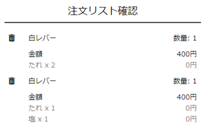 例:焼鳥店の場合、1皿に2本の焼鳥でたれ1本、塩1本をお客様に選択させたい場合などに使用出来ます。