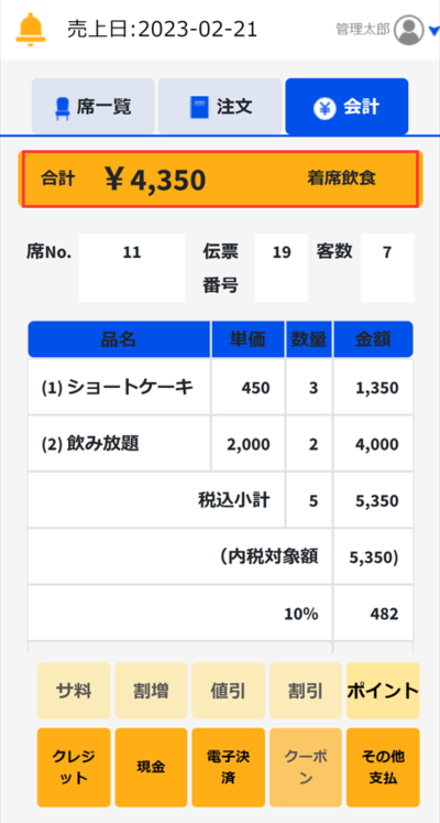 ②会計したいテーブルをタッチします。