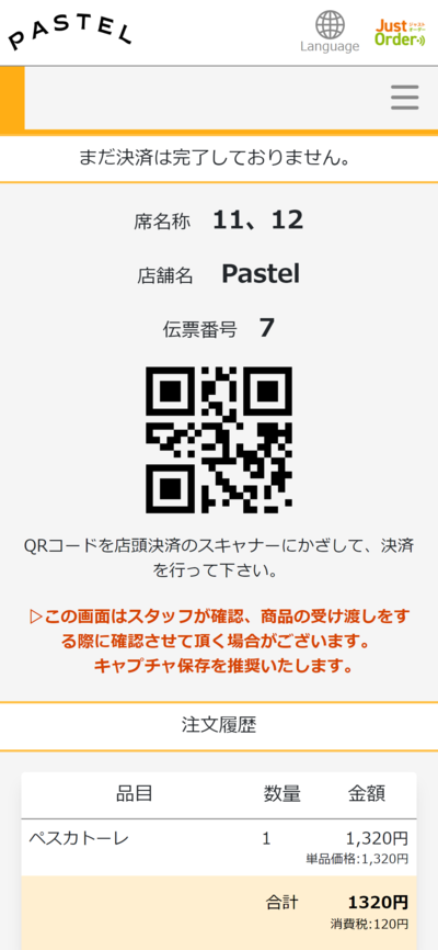 ③伝票のQRコードまたはスマホのQRコードで決済してください。