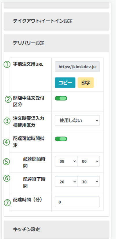 ⑦【配達時間(分)】配達時間(分)を設定することができます。