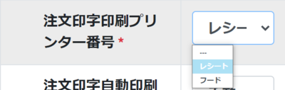 ※注文印字(注文明細)は席種類ごとにどのプリンターから印字するかを選択できます。選択しない場合は「注文印字印刷プリンター番号」に設定したプリンターから印字されます。