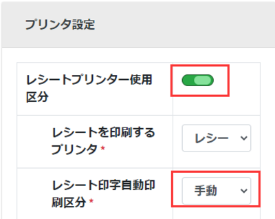 レシートのプリンタ設定までは「レシートを自動発行したい」の操作と同じですのでそちらを参照してください。