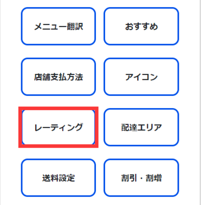レーティングはお客様側の画面に表示させるか非表示にするか設定できます。 例:「1日限定10食」「辛さ」など