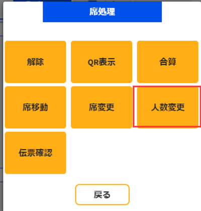 ②人数変更したい席を選択し、人数変更を押します。