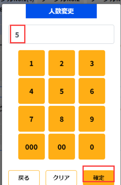 ③何人に変更になったか入力し確定ボタンを押します。