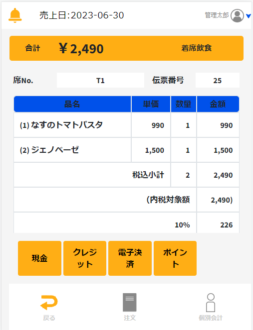 | 会計前印字 | 会計前に伝票を印字することができます。 |