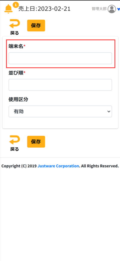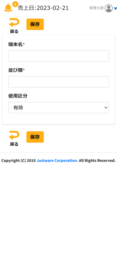 ③設定タブの「会計端末管理」から新規登録をしてください。