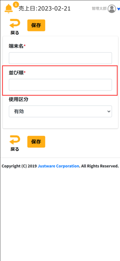 ⑤ポップアップが表示されるので「表示順」に端末の番号を入力します。