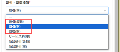 値引の場合は値引額、割引・割増の場合はその比率を入力します。