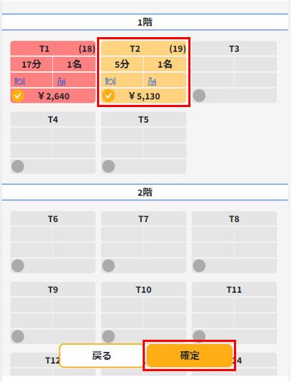 ③合算したい会計のあるテーブルを選択し「確定」を選択します。