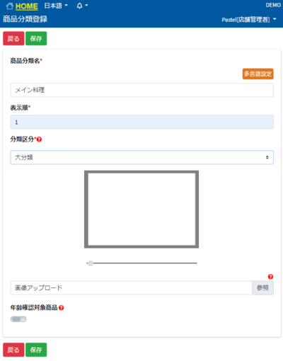 アルコールなどのカテゴリを設定する場合は年齢確認対象商品オンにしますと