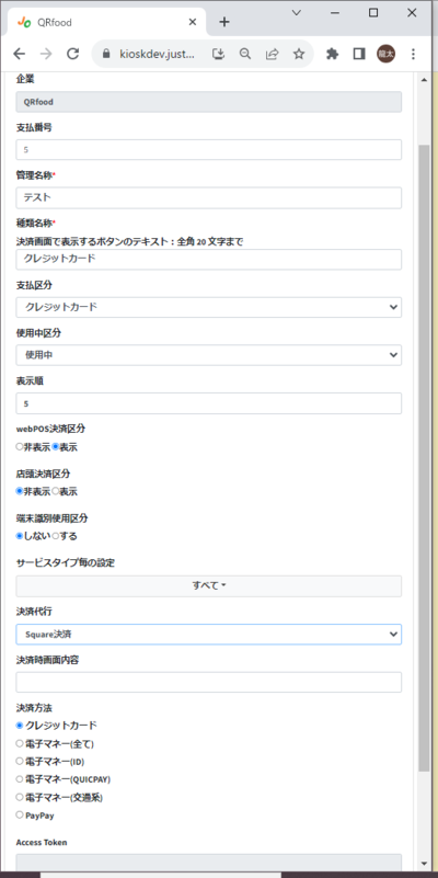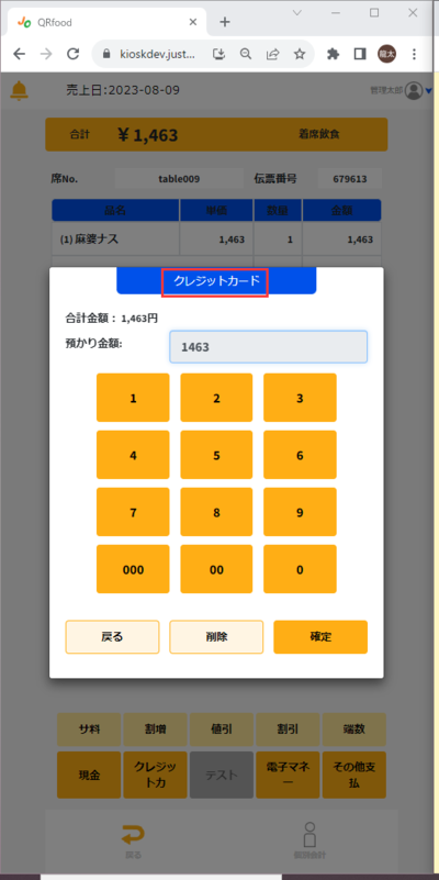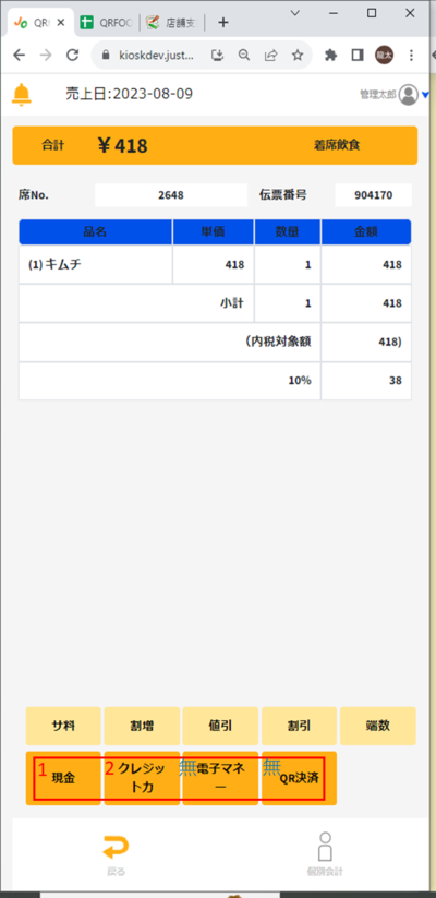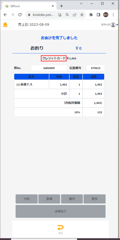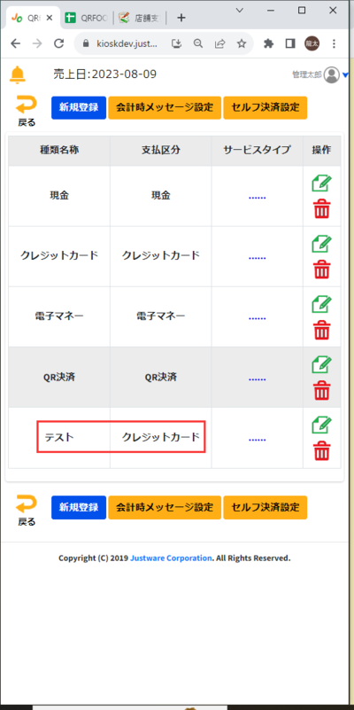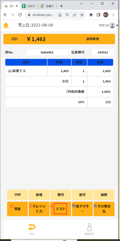 店舗支払方法、会計画面に追加されていることを確認できたら完了です。
