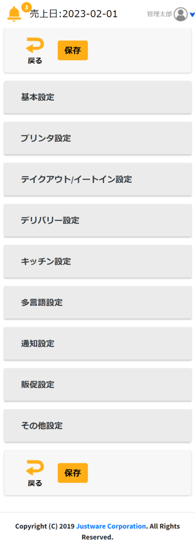 「店舗設定」ではjustorderの詳細な機能について設定することができます。詳しい設定の項目の説明は下記のリンクを参照してください。