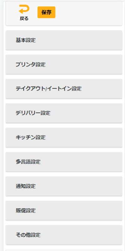 「店舗設定」ではjustorderの詳細な機能について設定することができます。詳しい設定の項目の説明は書きのそれぞれのリンクを参照してください。