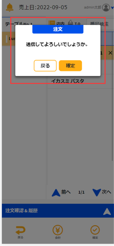「確定」をタッチすると注文が完了します。
