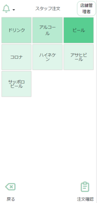 カテゴリに戻りたい場合は上部の【ドリンク】【アルコール】【ビール】の部分押すと前のカテゴリに戻ります。