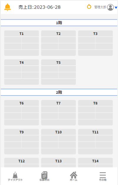 ①「席処理」画面では「空席状態」は以下のような画面が表示されます。