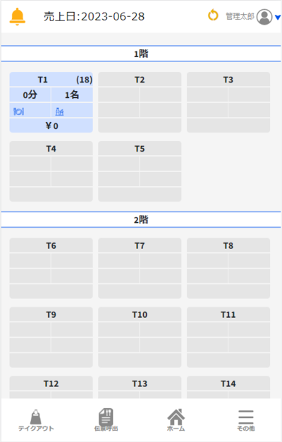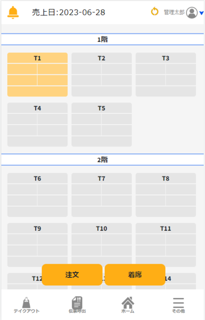 「着席」でお客様のテーブルと人数を登録することができます。