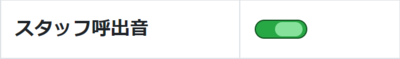 ②「スタッフ呼出音」はお客様からのスタッフ呼出時の通知音をオンにすることができます。