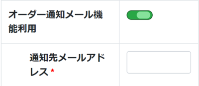 ⑤「オーダー通知メール機能」はオーダー通知通知を「連絡先メールアドレス」に登録積みのメールアドレスに連絡することができる機能です。
