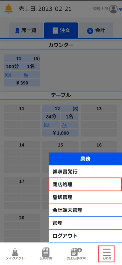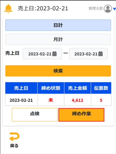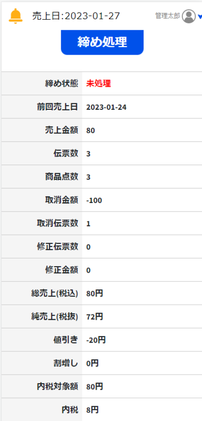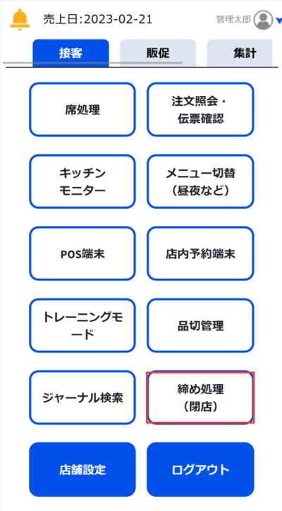 注:締め処理を実施するとドロア内の現金枚数の変更や備考欄の編集ができなくなります。