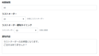 ラストオーダーの時間とラストオーダーを通知する時間、通知文言を設定出来ます。