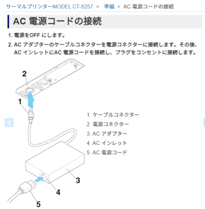公式のオンラインマニュアルはこちら→https://www.citizen-systems.co.jp/cms/c-s/printer/download/manual/ct-s257/ja/index.html#Section1