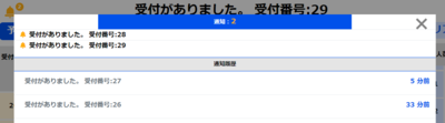 受付待ちの状態を確認できる画面です。