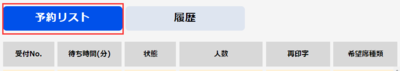 すでに席に案内したお客様やキャンセルしたお客様の履歴です。