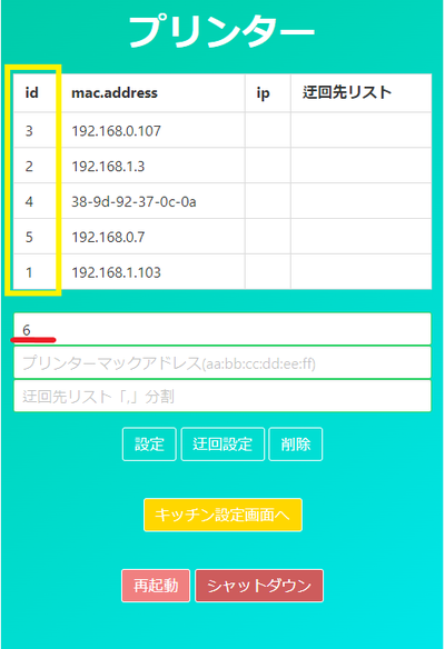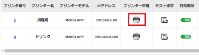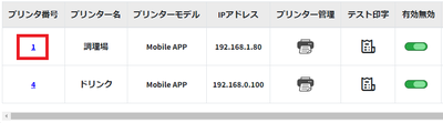 数字はJustOrder内で設定した「プリンタ番号」と連動しています。
