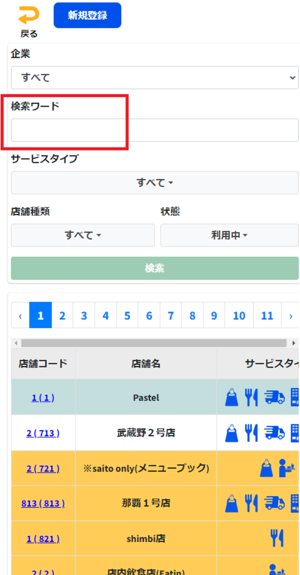 ⑧自分の店舗を見つけ、店舗コードを確認してください。