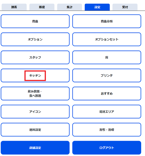 ②「設定」をタップ→「キッチンプリンター設定」が開くので、「稼働する」がON(青色)になっていることを確認してください。