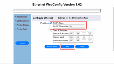③「DHCP Client」を選択し、「Save」をクリックします。